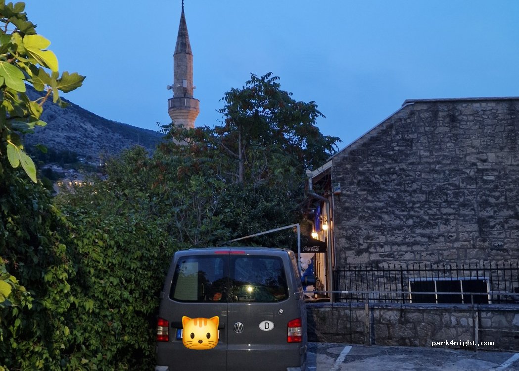 Wir durften hier eine Nacht schlafen, sicher hinter einem Tor. Die Nähe zur Altstadt ist unschlagbar. Es hat 15 Euro gekostet. Kein WC, aber Frischwasser. nicht für Wohnmobile geeignet.