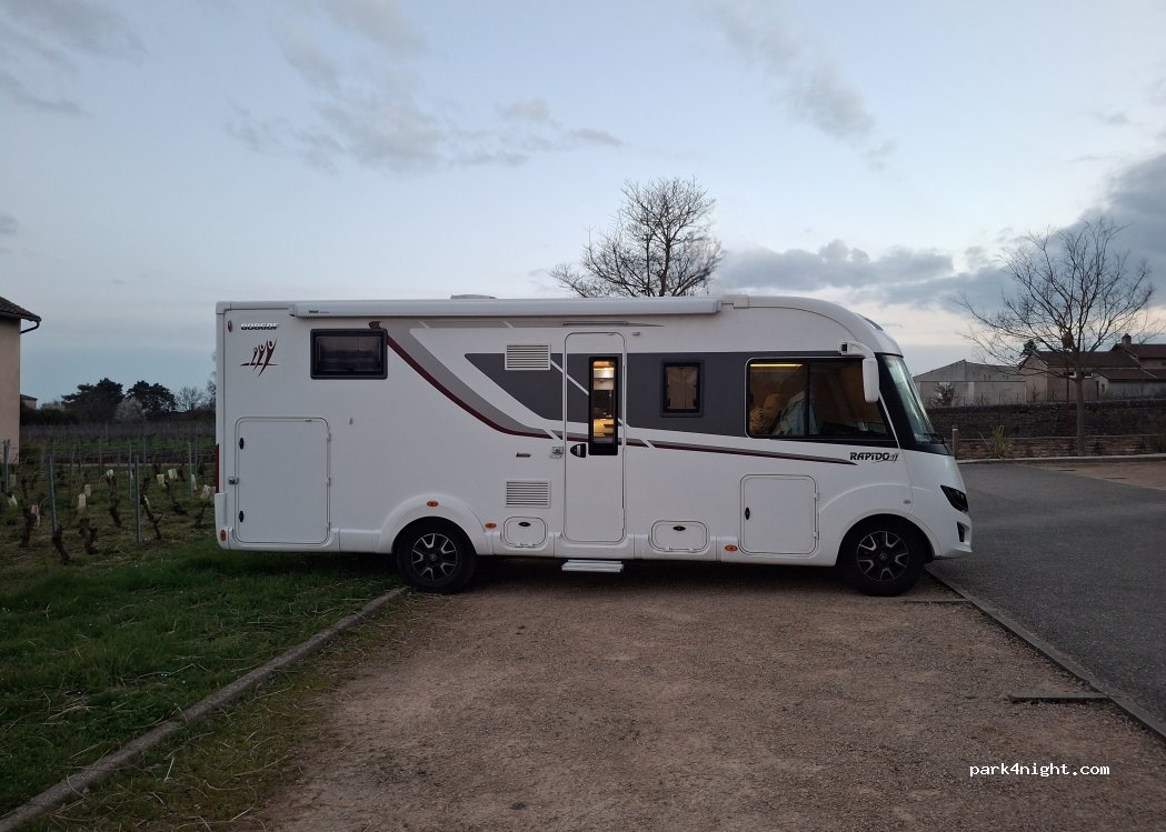 Emplacement très agréable, à environ 7 Km de Mâcon. Vidange, eau et toilettes disponibles gratuitement sur cette aire. Nous sommes entourés de vignes, possibilité de faire des randonnées et du VTT. Merci à la municipalité