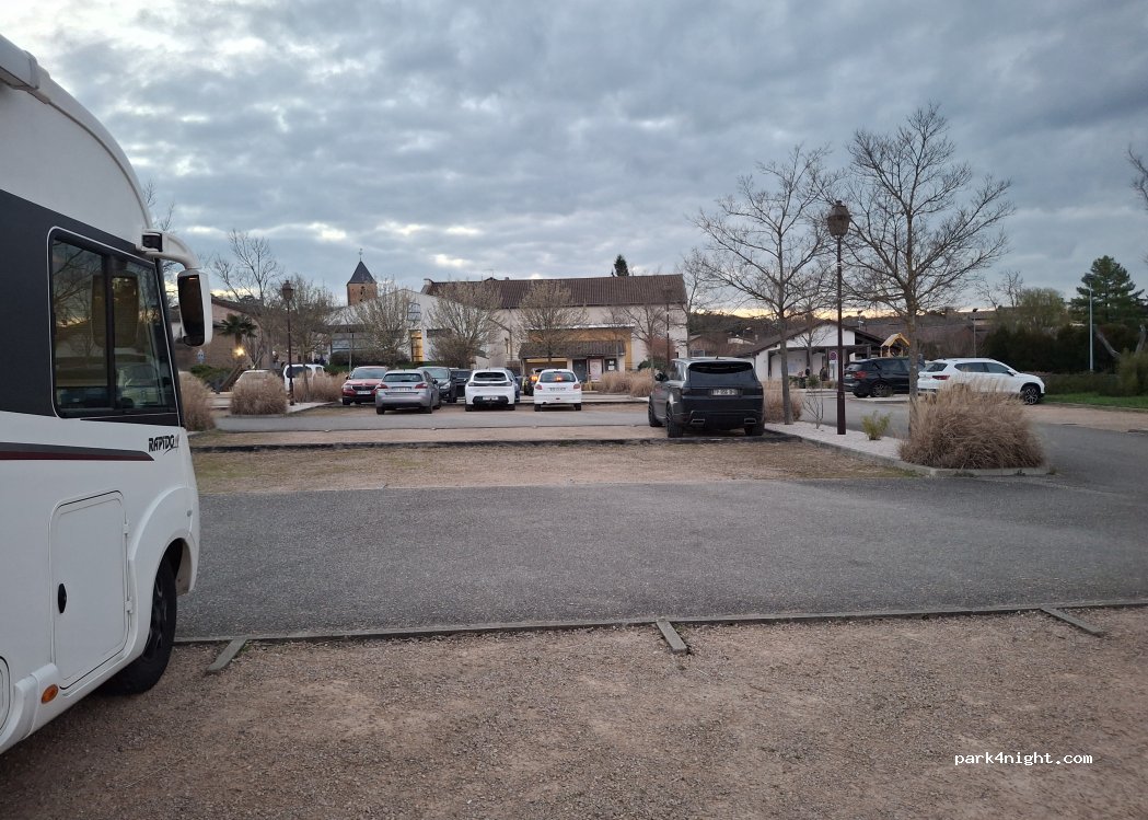Proche sortie autoroute , le parking est toléré pour les camping-cars, mais c est un parking pour la salle des fêtes . Les places sont en pentes. Possibilité de vidanges