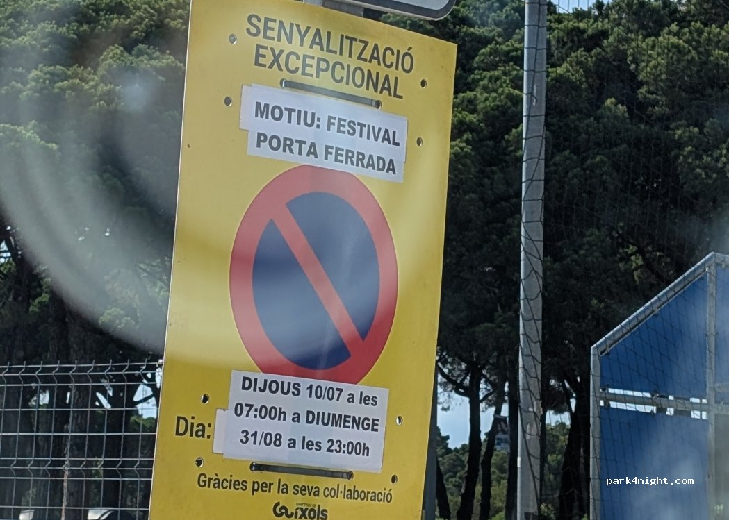 Está prohibido aparcar desde el jueves 10 de julio a las 7:00 hasta el domingo 31 de agosto de 2025 a las 23:00 debido a un festival.
