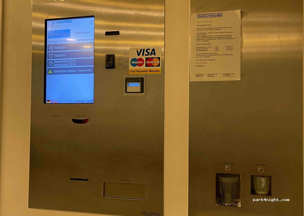 Wäsche riecht nicht frisch. Die Waschmaschinen hätten schon 2018 gewartet werden müssen. Der Fußboden und die Waschmaschinen waren Vormittags schon dreckig. Wenige Möglichkeiten für Wohnmobile zuparken. Preise wurden angehoben.
