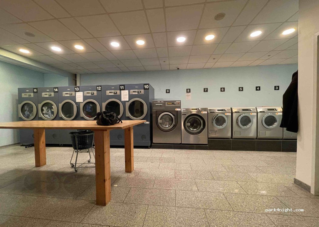 Kann die vorherigen Kommentare NICHT verstehen. Parkplätze überall in der Nähe vorhanden, auch für größere Fahrzeuge. Das kein 40 Tonner hier ins Wohngebiet passt sollte klar sein. Waschen 4€ für 6,5 kg - TOP! 9kg - 5,50€! woanders doppelt so teuer! Wäsche ist sauber und frisch! Beschreibung für den Trockner (3€ - bis zu 60min) auf blauen Schild für jeden unmissverständlich erklärt!
