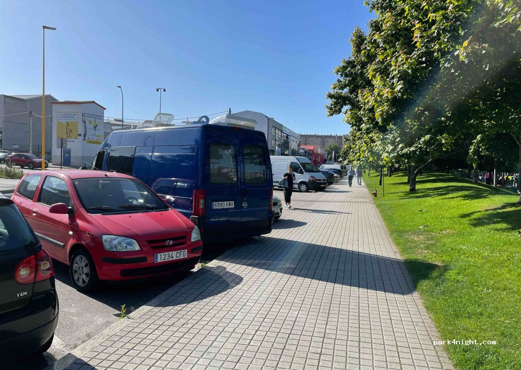Batería de estacionamiento para visitar parte de la ciudad. Junto al MEGA (Museo de Estrella Galicia), ya 10 minutos andando de la Casa de las Ciencias. Al lado de un parque donde se permiten mascotas. Durante el día, muy bien. Limitación de longitud al tratarse de un aparcamiento convencional.