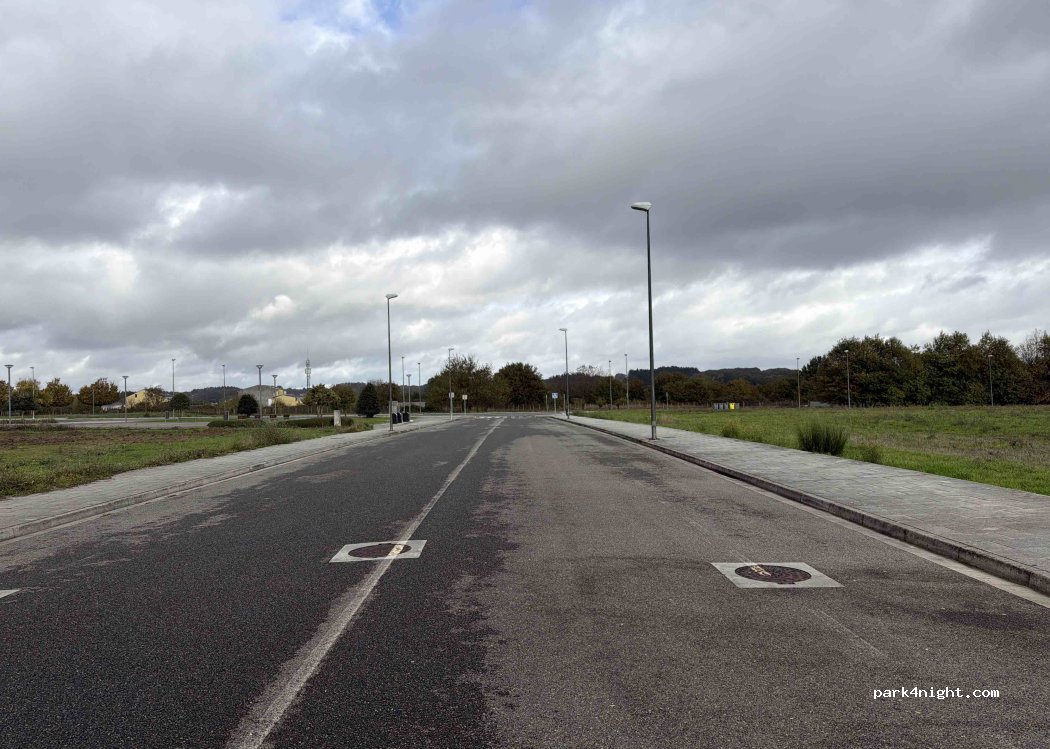 Emplacement de remplacement de l'aire de camping-car, fermée pour cause de fête de la ville. Voirie en tres bon état mais aucune construction pour le moment.