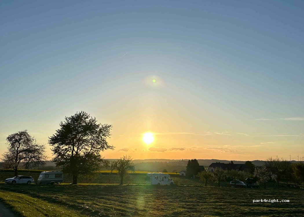 Toller privater Stellplatz direkt unter Obstbäumen und zwischen Wiesen und Feldern. Super nette "Vermieter" und eine ganz ruhige Nacht mit tollem Sonnenuntergang. Gerne wieder :)