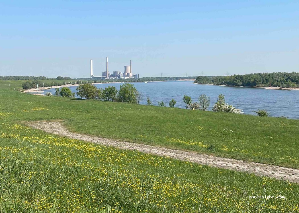 Wir standen 2 Nächte. Privater Platz für 3 Womos. Die Betreiber sind junge Leute und sehr nett. Wir wählten die Sicht auf die Ponywiese, ein Getreidefeld mit angrenzendem Wald und eine ca. 300m entfernte Mühle. Top! Die Umgebung lädt zu ausgedehnten Fahrradtouren am Rhein ein. Im Mai ein Traum: saftig grüne Wiesen, blühende Blumen und Schiffe auf dem Rhein.