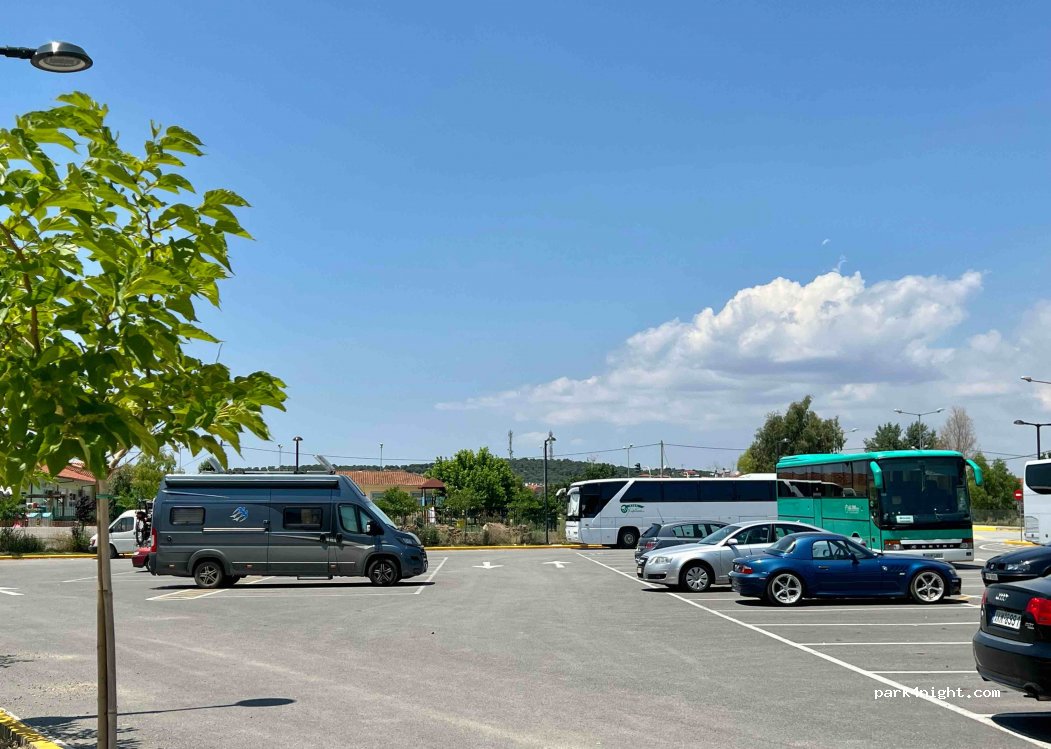 Grand parking public non ombragé, situé au centre pour visiter le marché qui se tient le mercredi de 6h00 à 14h00. Il n'est pas loin de la plage et du port. De nombreuses tavernes et cafés se trouvent à proximité. Bruit de fond important mais tolérable de la rue.