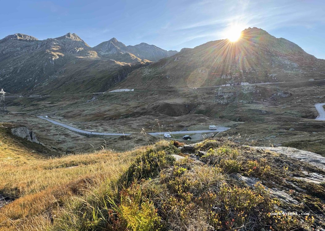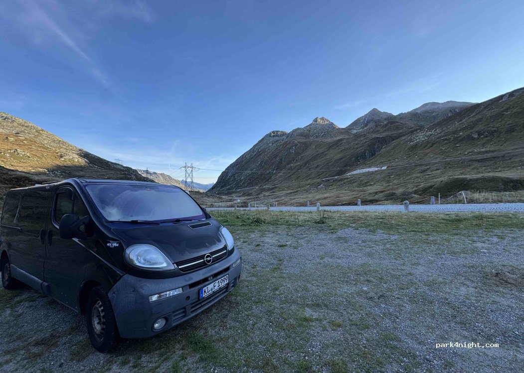 Spot incluso para una autocaravana grande con una bonita vista. Cerca de los molinos de viento puedes escuchar y calmar el viento pero excelente ubicación para una noche. El tráfico de Gotthard Pass es audible pero no molesto. Está el arroyo Gotthardreuss, que es precioso.