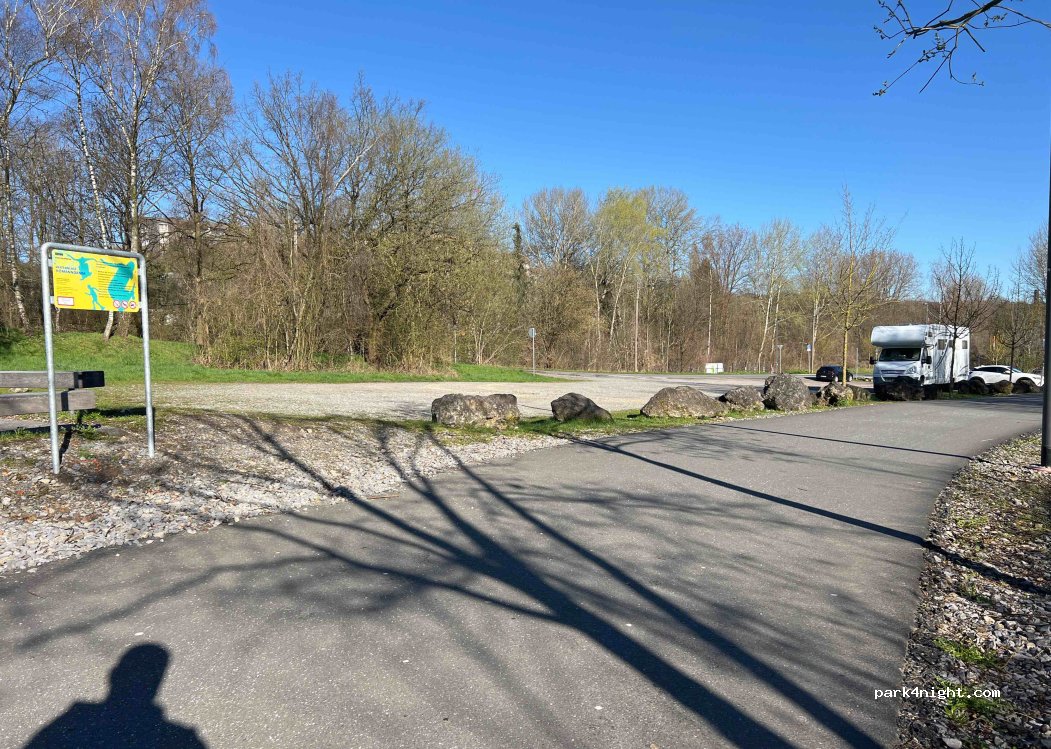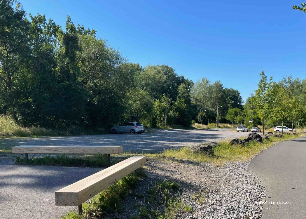Un grand terrain en gravier offre beaucoup de stationnement. Les camions ne sont pas autorisés à stationner ici. De là, vous pouvez très bien commencer des randonnées à vélo. À côté du parking se trouve un skate park.