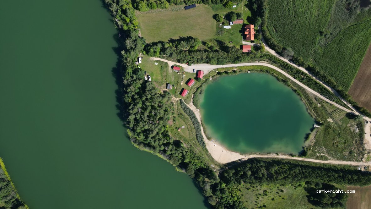 A place in development, at the time there were 4 motorhome pitches on a hilltop and some cabins below. On low-season a caravan or two also fit. Situated around a small lake so first down- and after uphill drive is quite steep. Super friendly hosts. We were able to pay euros cash (caravan, 4 ppl = 20€, incl water, electricity and gray- and blackwater discharges). Terminal should come since June.