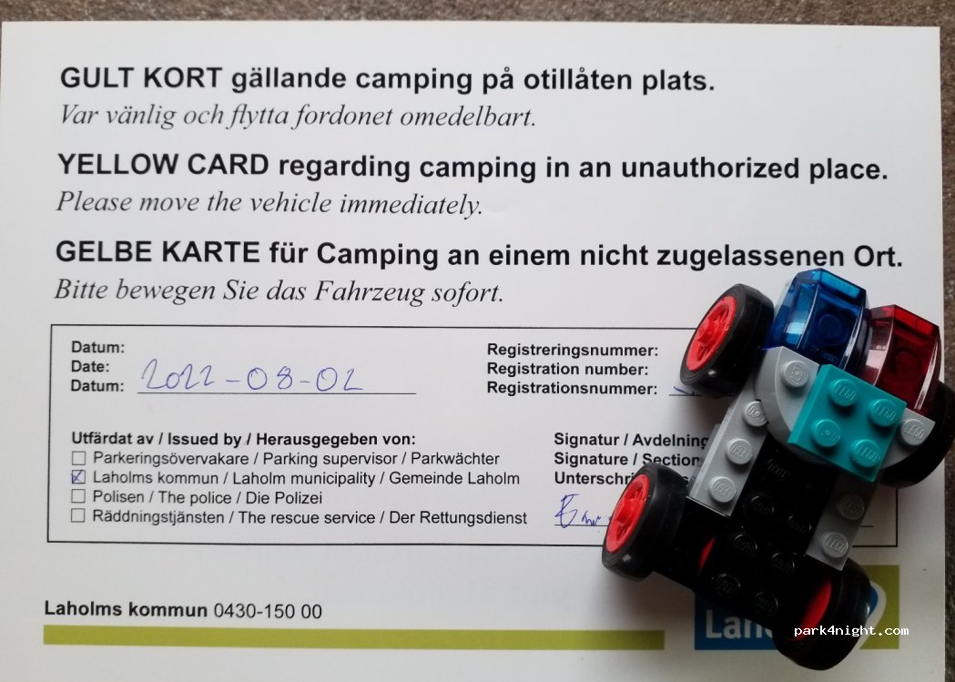 In Sweden it’s not allowed to put out chairs and table at a parkinglot, thats why more and more forbidden signs shows up at parkinglots. If you want camping, please go to a camping or ställplats.