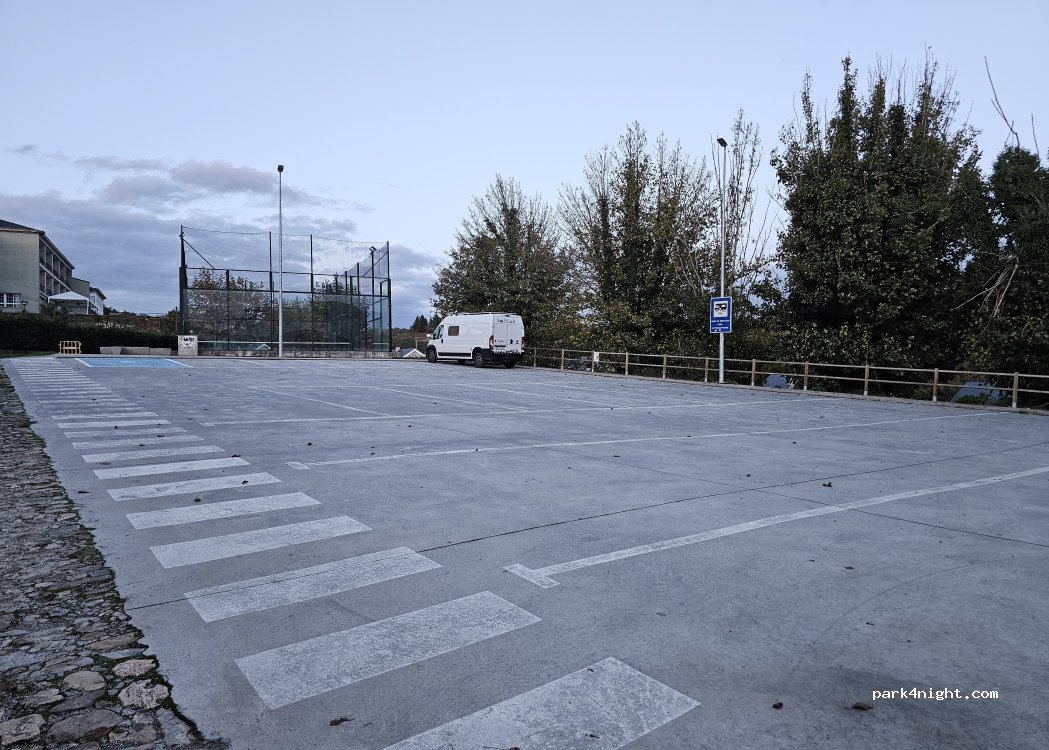 Lo único positivo de esta área es que está pavimentada, y muy céntrica. Se nota que quien ha diseñado el área no tiene camper, se podría decir que es "La Torre de Pisa" de las áreas. No pones la furgo recta ni con una cuña con ángulo de 90°. Os recomiendo comprar una tarta de Santiago en la tienda de ANCANO.