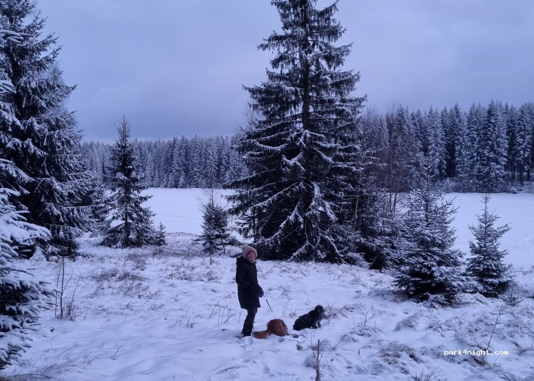 Nous sommes restés 2 nuits dans ce sublime endroits. Le parking est à 100 m d’un lac entouré de sapins. L’eau ferrugineuse est un fraîche mais c’est vivifiant et magique. Vraiment isolé, vous nagerez seul le matin. Vers 12h, les locaux arrivent et restent jusqu’au soir. Le WE, quelques fêtes y sont gentiment organisées. Chiens bienvenus. Frontière Czeck a 5km au travers d’une superbe forêt. 4G OK