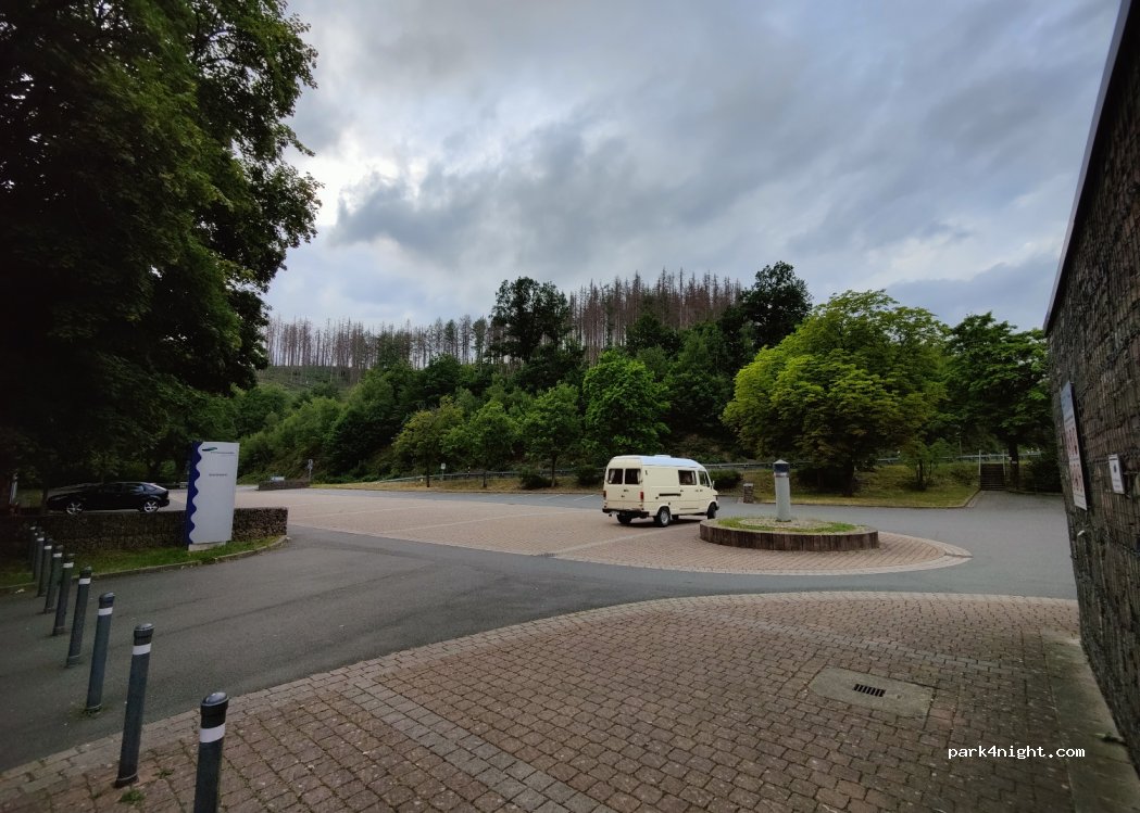 Ein Parkplatz an der Staumauer des Stausees. Stellplatz für Wohnmobile per Schild erlaubt. Ok öffentliche Toiletten. Übernachten laut Schild (typisch deutsch) nicht erlaubt
