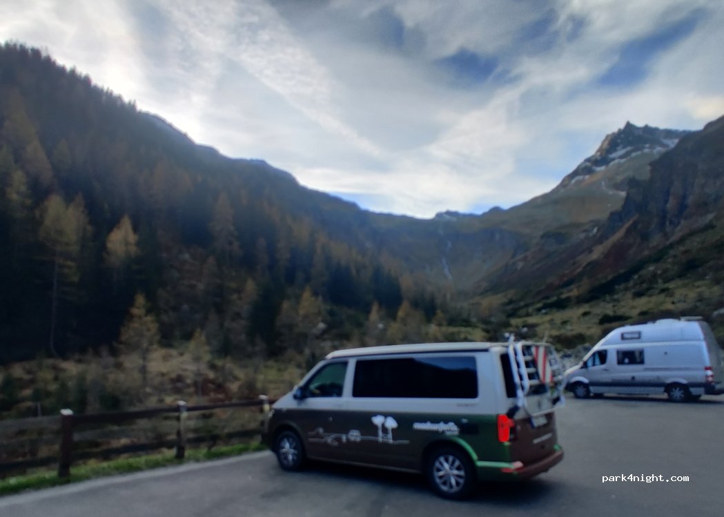Grand parking asphalté et plat devant l'entrée du tunnel de Felbertauern. Des toilettes publiques sont disponibles. Stationnement de nuit possible sans aucun problème et gratuit.