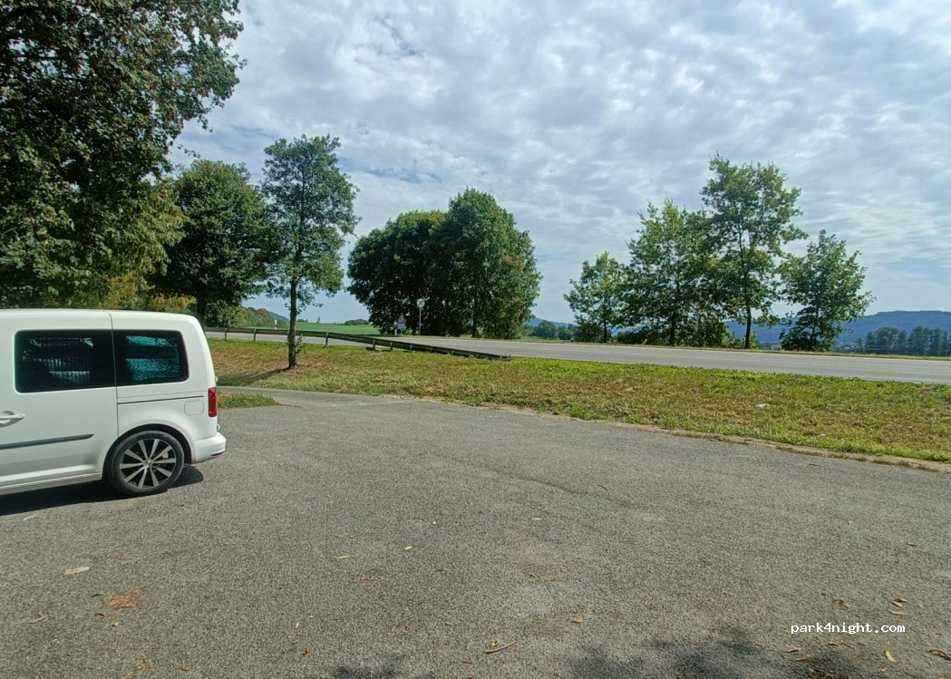 Kleiner Parkplatz neben der Landstraße. Kein Schild bzgl Camping Verboten