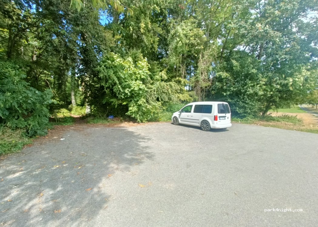 Petit parking à côté de la route de campagne. Aucun signe concernant le camping interdit