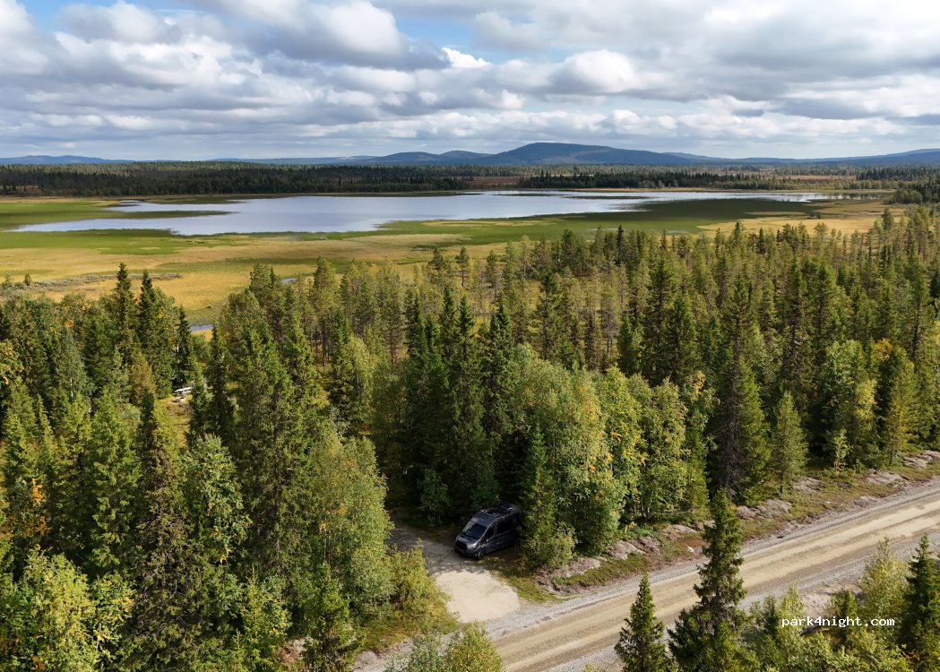 Birdwatching tower/area with picnic table and fire pit. Looks like there is also a dry toilet here but it does not look maintained. Small gravel parking 1-2 spots, would maybe fit a larger camper alone. No signs with parking regulations. After one night we realized that there are ALOT of mosquitoes here, good place if you come late just to sleep.