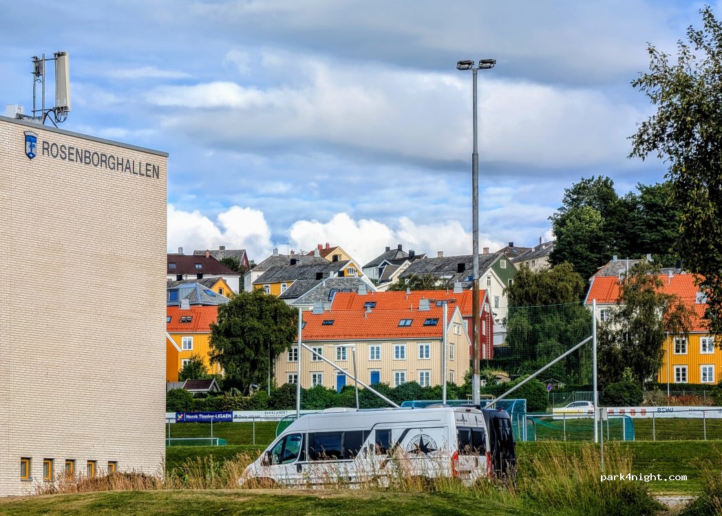 Parking au calme idéal pour visiter Trondheim. Gratuit la nuit entre 22h-8h la semaine et 18h-8h le WE. Beaucoup d’espace vert, idéal pour les voyageurs avec chiens.