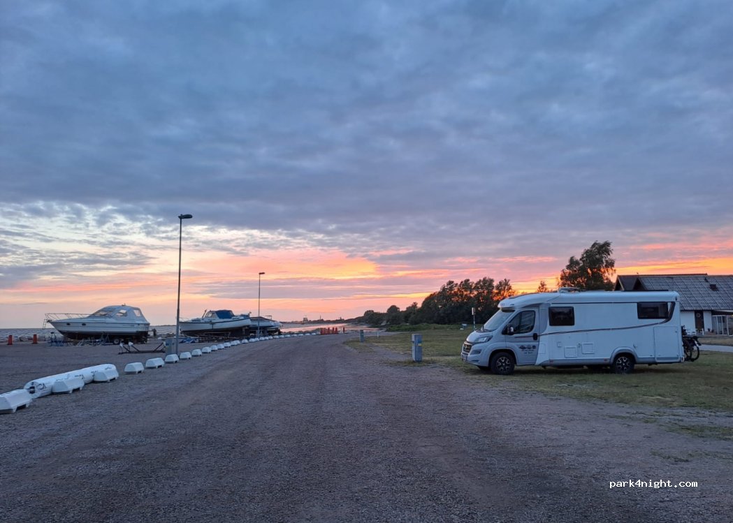 Perfekter Platz (ohne Zeitbegrenzung) von von oder zur Fähre an einem kleinen Hafen mit Gastronomie. Tolle Lage mit freiem Blick aufs Meer. WC und Dusche (10 SEK für 4min.) vor Ort und sauber. Die Algengerüche, naja wir sind am Meer. Mal mehr, mal weniger.