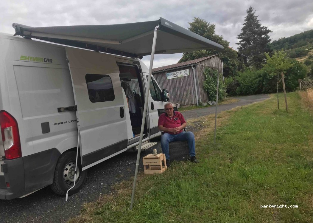 Großer Parkplatz neben einer Gaststätte. Besuch der Gaststätte ist obligatorisch. Montags Ruhetag. Bitte informieren Sie den Wirt, wenn Sie über Nacht bleiben. Stromversorgung bitte vorher mit dem Wirt abklären. Abwasser zur Zeit noch nicht möglich, aber in 3 km Entfernung ist es kostenlos möglich.
