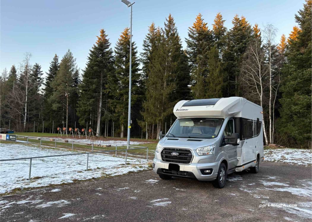 Von Freitag auf Samstag eine ruhige Nacht verbracht. Das Fußballtraining war um ca 20 Uhr vorbei. Recht großer und ebener Parkplatz umgeben vom Wald. Wer es ruhig und einsam mag ist hier genau richtig.