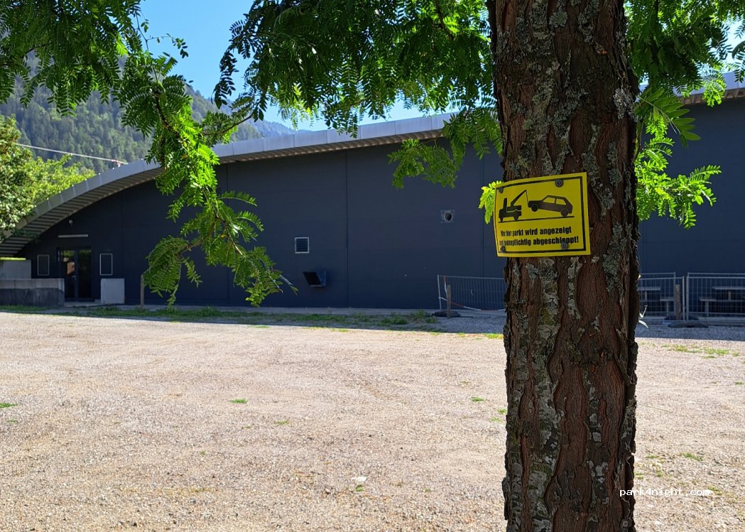 ATTENZIONE; il parcheggio sotto la ferrovia, a fianco del palazzetto del ghiaccio (seconda foto) è a rischio di rimozione forzata, come indica il cartello affisso a un albero! Un vicino ci ha avvertiti mentre stavamo parcheggiando, dicendoci che Polizia locale passa di frequente. Noi ce ne siamo andati!