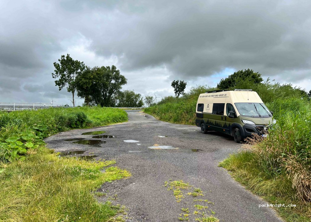 Wir haben eine Nacht hier verbracht weil der offizielle Stellplatz in Wittmund belegt war. Es war eine ruhige Nacht und den Feldweg fanden unsere Hunde auch ganz interessant. Am Morgen kamen mehrere Einheimische um mit ihren Hunden spazieren zu gehen. Aber von uns wollte keiner was.