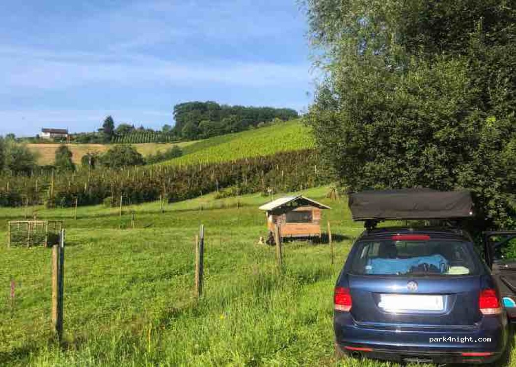 Parking space on a dirt road about 50 m from the main road. Quiet, no facilities. Next to pasture with goats and sheep. Quiet at night.