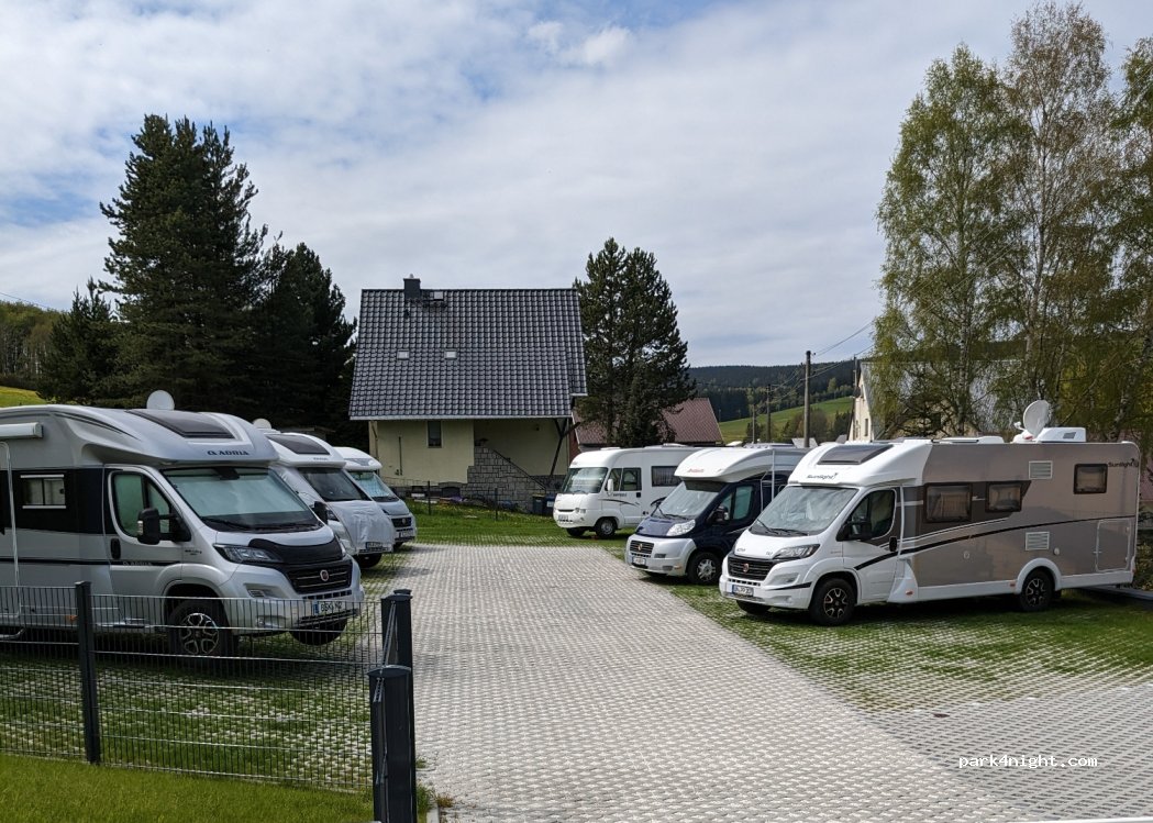 Ein sehr schöner Platz, man kann ein- und ausfahren ohne um seinen Stellplatz fürchten zu müssen. 10 Plätze bis max. 7 m, Ansonsten schwierig die V&E zu erreichen 15€ parken bar/EC, zuzüglich Wasser, Dusche, chem. Toilette (1,5€) bezahlbar Münzen. Duschen sind super neu. Die Fichtelbergbahn 2min. fußläufig zu erreichen. Oberwiesenthal-Cranzahn Platzlichter gehen ab 22.00 auch aus.