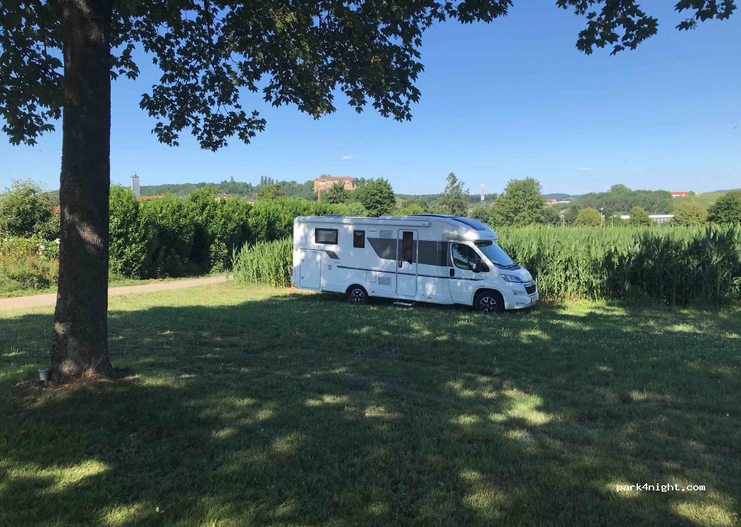Grand parking dans la prairie et emplacements de camping permanents nouvellement créés, avec vue sur le château de Stettenfels. Que ce soit pour une nuit, car proche de l'autoroute, ou pour des vacances avec des enfants, c'est idéal. Accueil très sympathique de Claudia Lutz. Son propre vin très savoureux et l'aire de jeux ravissent petits et grands. Merci de toujours appeler à l'avance pour voir s'il y a des places disponibles.