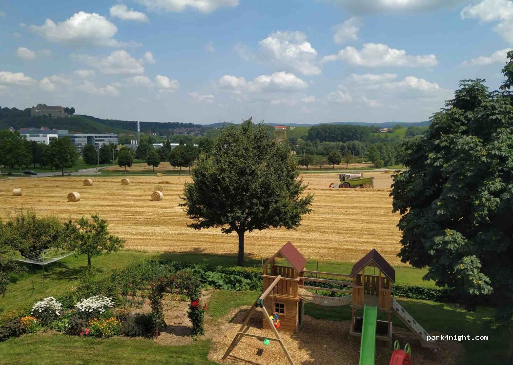 Great meadow pitch and newly created permanent camper pitches, with a view of Stettenfels Castle. Ideal for one night, as it is close to the motorway, or for a holiday with children. Very friendly welcome from Claudia Lutz. Very tasty home-made wine and the playground delights young and old. Please always call in advance to ask if there are any spaces available.