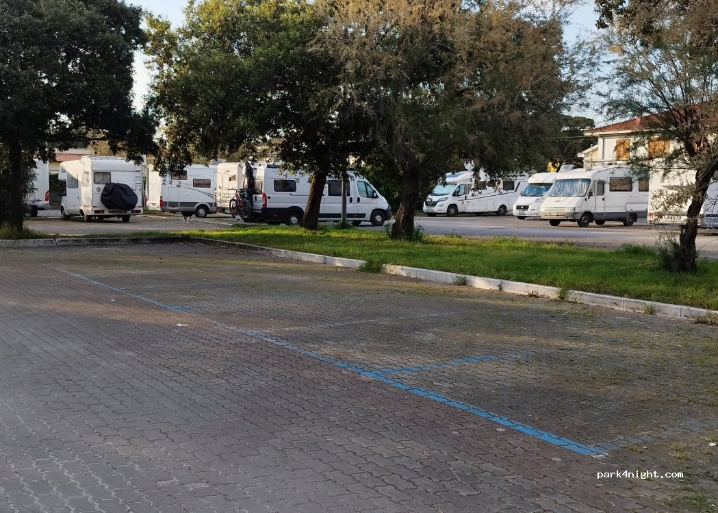 Su autobloccanti, gratuito in bassa stagione e abbastanza tranquillo. Condiviso con le auto. Gli stalli sono corti e stretti, solo pochi sono a misura di camper. Nessun servizio, praticamente sul lungomare.