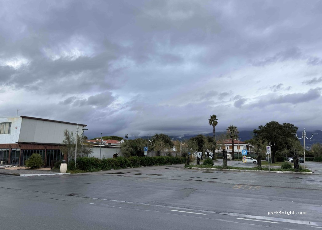 A gennaio è tranquillo e silenzioso.A due passi dal mare, il cui accesso peró è precluso dagli stabilimenti recintati. Verso sud, si raggiunge un bel molo e finalmente si vede il mare. Park utile per fare tappa o essere vicino a Massa e Carrara per visitare le città. Per vedere il mare e andare in spiaggia in Toscana c'è di molto meglio. In bassa stagione gratuito, quindi ringraziamo il Comune.