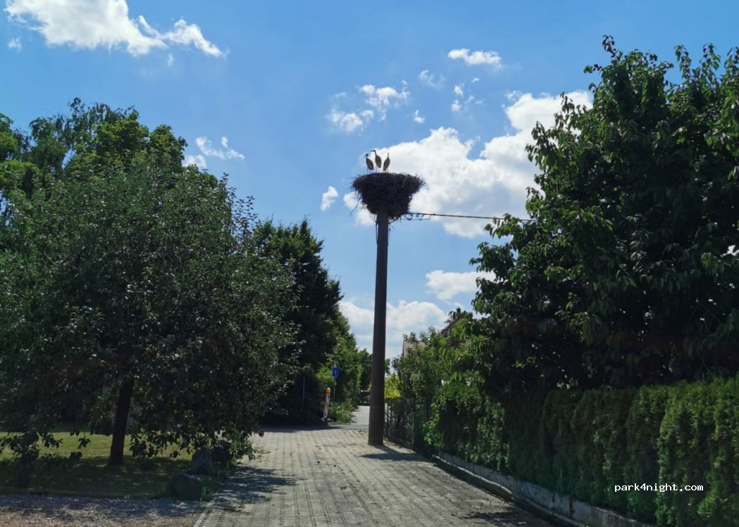 19.06.-20.06.25 Da es ein Stellplatz auf einem Privatgelände ist, gab es keine Ausschilderung. Wir haben für eine Nacht 10 € inkl. Strom gezahlt. Ver- und Entsorgung haben wir nicht gebraucht. Es war ruhig, die Besitzer waren sehr freundlich und wir hatten auch noch die Gelegenheit, die Störche zu beobachten. Insgesamt standen wir schöner als auf einem überfüllten WoMo-Platz.
