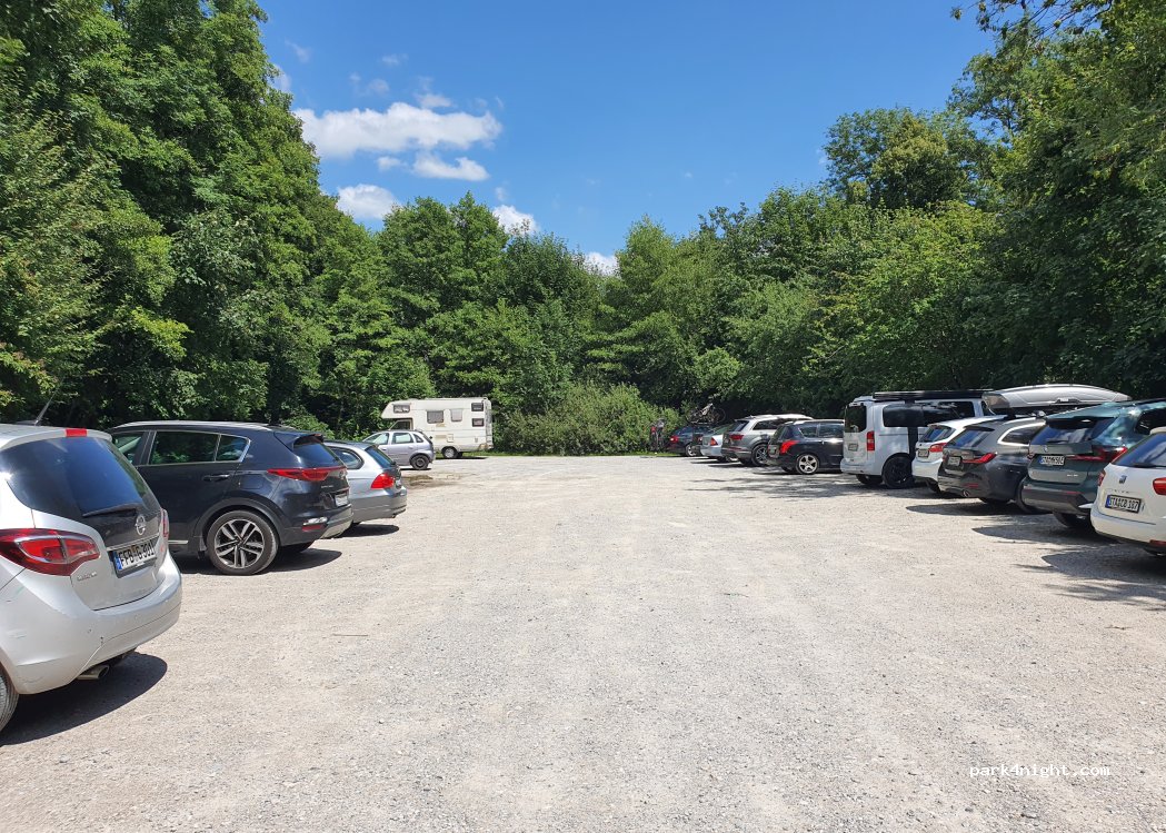 Kleiner Parkplatz nahe dem See mit Biergarten, hier toilettenbenutzung möglich. Weitläufiges Erholungsgelände. Straße weiter hoch noch einige weitere Parkplätze dazugehörig zum kleinen Parkplatz an der Straße. Viele Park- Buchten, umgeben von Wald, geschützt, sehr schön. Gleiche Parkgebühr wie der untere Parkplatz. Jedoch mit 2.10m Höhenbegrenzung.