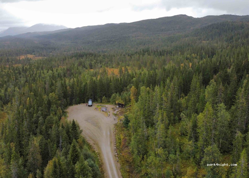 Mooie en rustige plaats, meer dan genoeg ruimte, toilet en prullenbak aanwezig. Startpunt van mooie wandeling in natuurgebied Bergefjell.