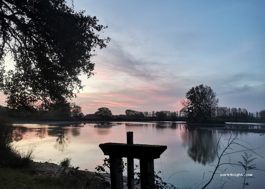 Grâce au commentaire précédent, nous avons passé la nuit proche de cet étang. La vue est superbe. La nuit a été bercée par le claquetis des poissons en surface. L'image est magnifique au petit matin. Tout est calme et paisible. Accès: nous avons un fourgon de 2m de haut. Il y a des branches basses.