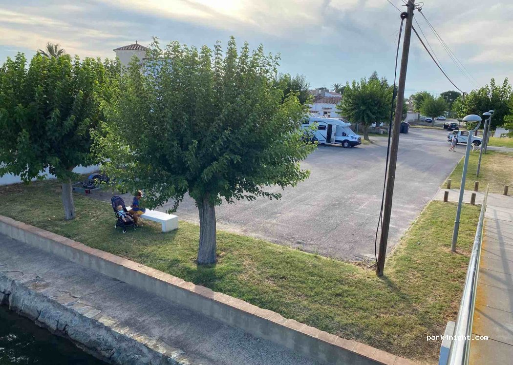 To advise, existing parking areas on all "carrers", 11 in total, parallel streets that allow access to houses along the channels. No bans for motorhomes, no services. Quiet and reassuring. If you own a kayak you can put it in the water and visit Ampuria Marina