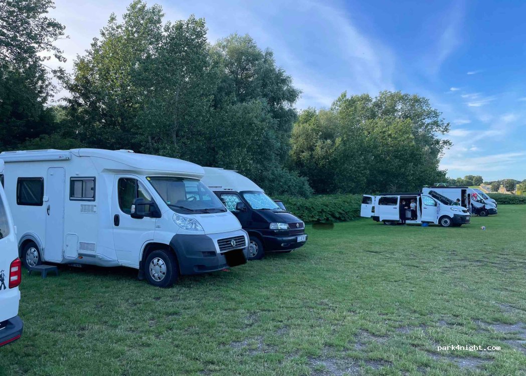 Schöner Platz ohne Dienstleistungen. Die Straße stört überhaupt nicht, ab 19:00 so gut wie kein Verkehr mehr. Die Wiese ist nach mehreren Regentagen stellenweise etwas weich, aber größtenteils gut befahrbar. Toll, dass es solche kostenlosen Plätze gibt.