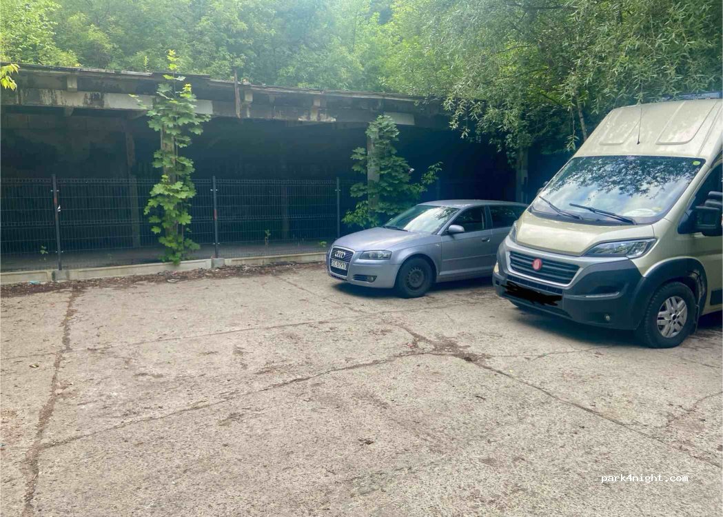 Right next to the Szary Dom, the former camp of Plaszow and the mound of Krakus. Simple partially shaded car park, not very noisy at night. Lots of work in the neighborhood, parking will not always exist. At the moment it is convenient for sleeping and free.