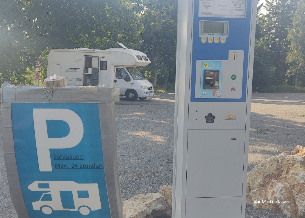 Waren für eine Nacht hier. Der Parkautomat funktioniert noch nicht. Auf Nachfrage im Restaurant teilte man uns mit, dass wir noch kostenlos stehen können, da der Parkplatz noch nicht „offiziell“ sei. Strom kann man mit Münzen bezahlen, ansonsten alles super & eine tolle Aussicht. Das Restaurant mit Biergarten ist auch sehr zu empfehlen!