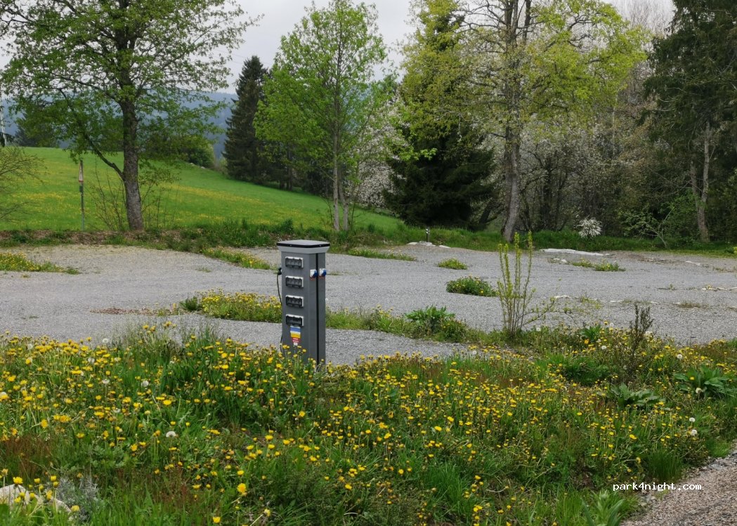 Ruhiger Stellplatz mit dem Dorfstübli nebenan. Aktuell steht nur eine provisorische Toilette zur Verfügung. Es soll aber bald ein Häuschen geben in dem man auch sein Geschirr waschen kann. Bezahlen kann man nur in bar am Automat oder im Dorfstübli.