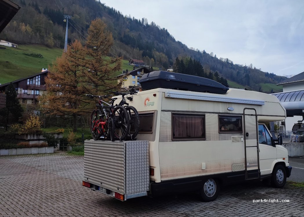 Sehr schöner Platz. Sehr ruhig. Auf dem Geländer der Gondelbahn (Durchfahrt neben kleinem Holzhaus) bitte nur parken wenn ihr mit der Gondelbahn auch fahren werdet. Wir wurden von der Betreiberin morgens gebeten umgehend den Ort zu verlassen. Besser ist der Asphaltierte Parkplatz an der Straße. Dieser ist auch sehr eben, kostet gleich viel und ist nachts genauso ruhig.