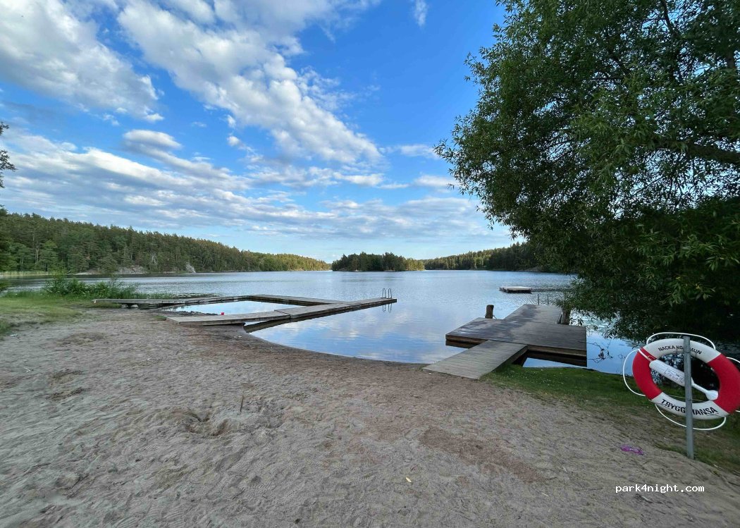 Der perfekte Ort, um zu übernachten. Direkt am See gibt es 3 Parkplätze. Auf einem kann man 24h kostenlos über Nacht stehen, auf den 2 anderen daneben 6h. In einem großen Haus stehen kostenlos Duschen und Toiletten zur Verfügung. Ein Pferdegestüt gibt es dort auch. Die Nähe zu Stockholm ist auch perfekt:-)