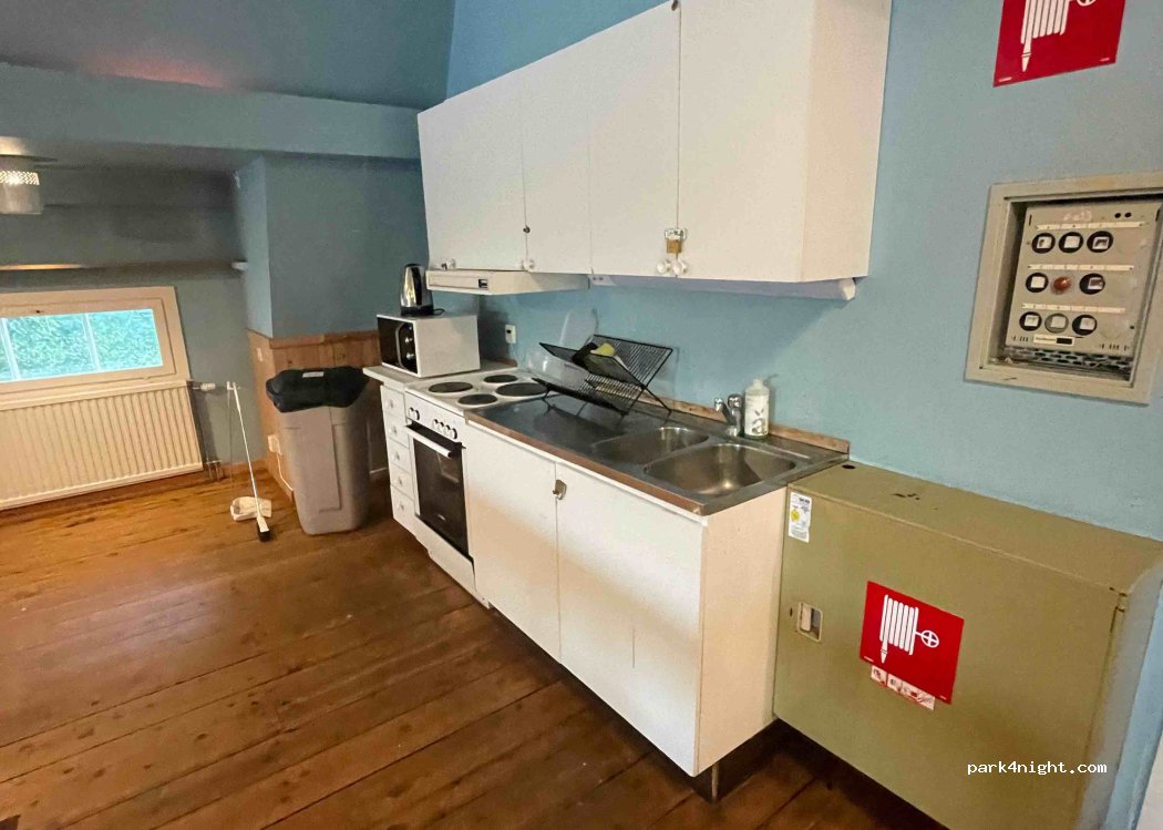 Der Platz ist leider nur ein schoterparkplatz neben einem reiterhof, dafür ist aber das Haus mit den Duschen, Toilette und Küche perfekt. Die Duschen sind sammelduschen. Die Küche ist im Obergeschoss, ein großer Raum mit mehreren Tischen wir hatten diesen den ganzen Tag für uns alleine. Wenn ihr kochen wollt bringt alles selber mit Die Küche hat keine Ausstattung. Alles ist sauber.