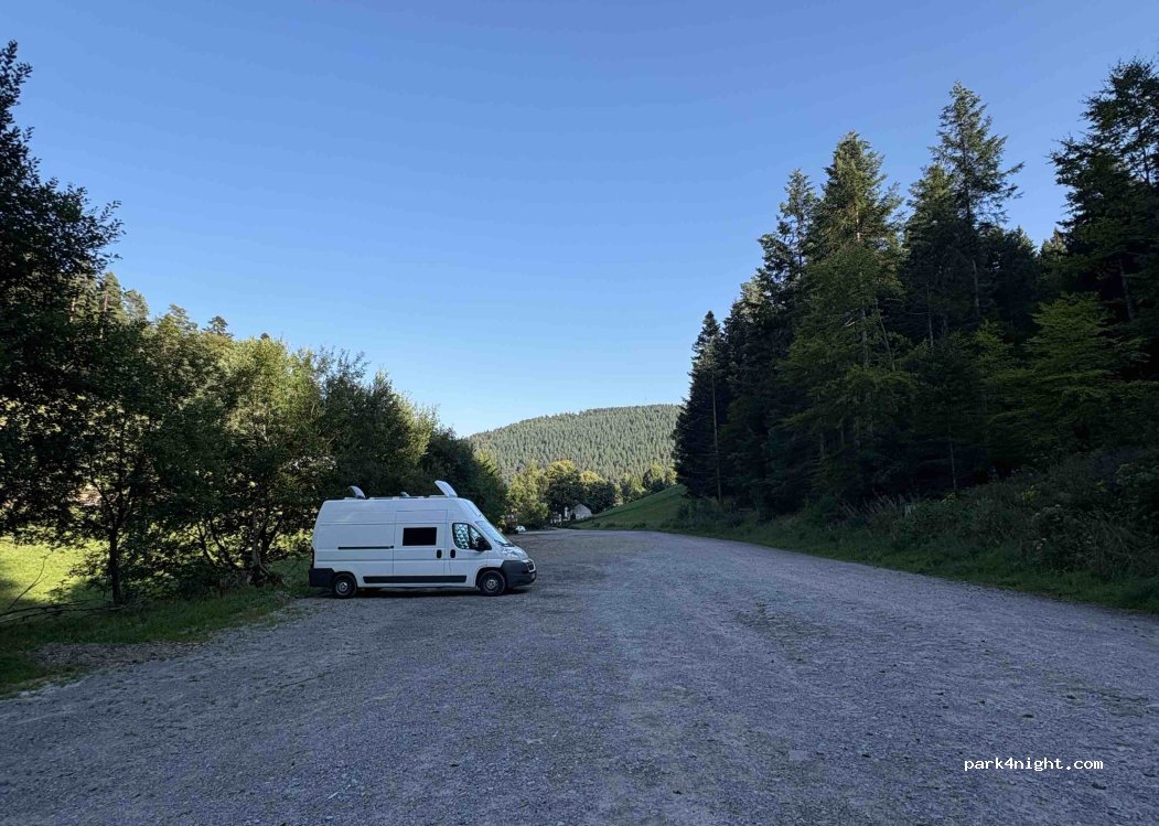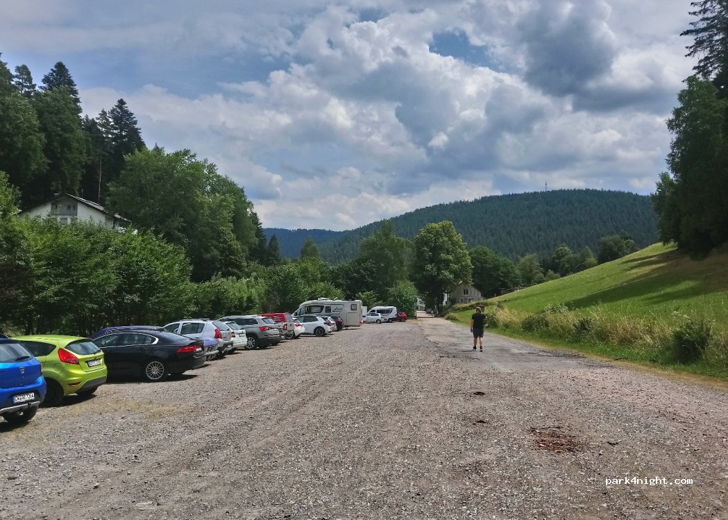 Pàrquing ideal per pernoctar després o abans de visitar Bad Wildbad i allunyar-te de la gent. Esplanada de grava una mica inclinada, amb força ombra a la tarda (agost). A 500 m caminant hi ha un abeurador amb cerveses fresques i refrescos per 1,5 €, i on pots veure cérvols en captivitat.