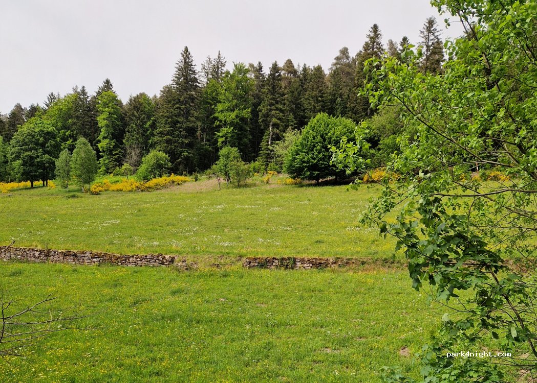 Lieu paisible. On était tout seul pour dormir. Aucun soucis. Les enfants ont aimé le parc avec le cerf et les biches. A côté de l'enclos des biches il y a des bouteilles de verre aromatisées (citron, pomme, groseilles...)stockées dans un tronc et refroidies par le ruisseau à libre disposition. Un paiement (montant libre) est demandé en contrepartie.