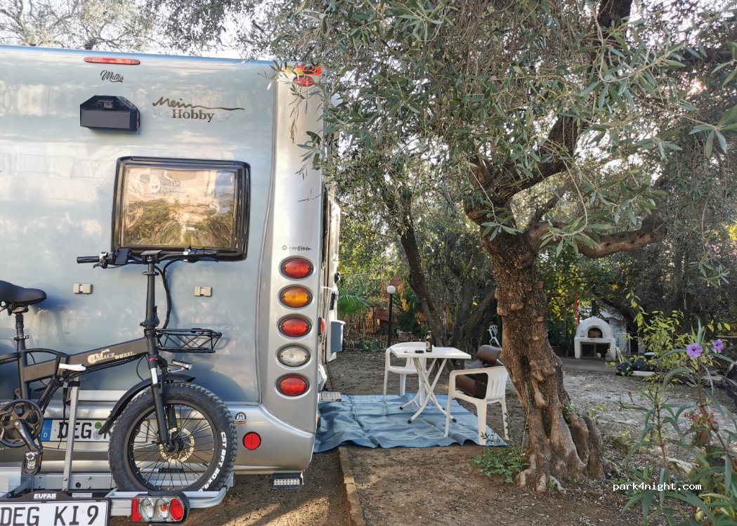 Très petit camping, 3 à 5 petits camping cars,avec douche wc de quoi faire la cuisine. Vidange camping car ?? Très sympa, bonne ambiance 1000TL la nuitée. Plage à 400 m.