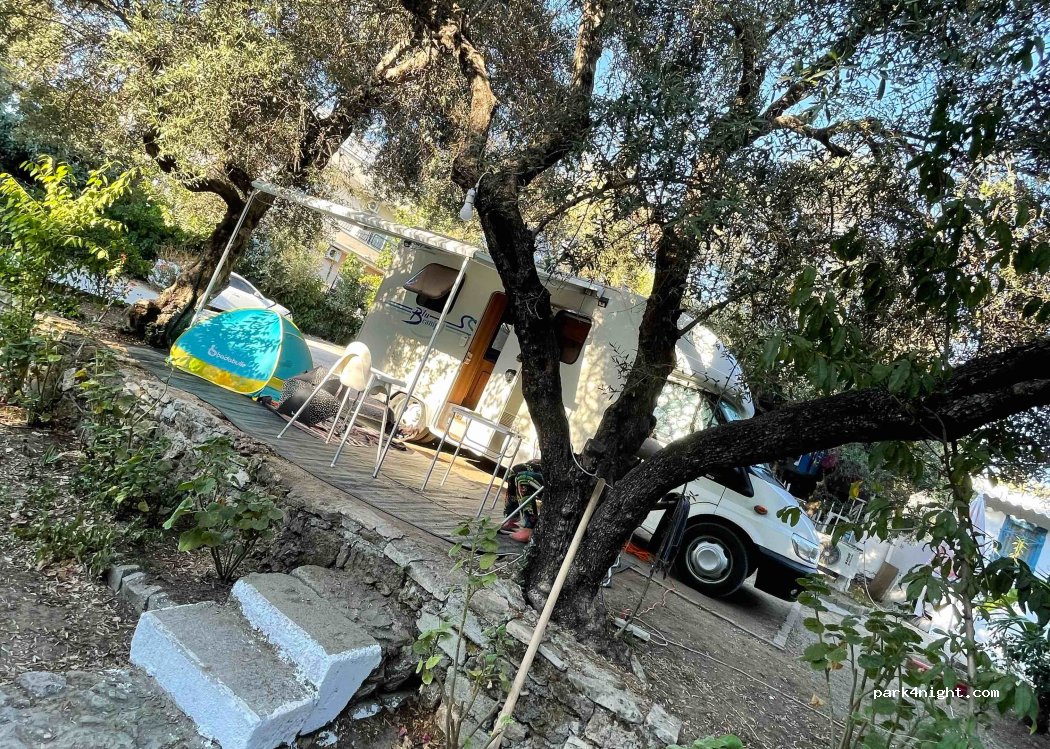 Istanbul Pansiyon is a super small, very quiet campsite with very few pitches, as there are small houses on site. The beach is only 250 m away with access from the campsite. There are showers and toilets. It's very quiet, and you can even have breakfast for 70 TL. We paid 250 TL (May 2023) for the night and are considering staying longer because all the monuments and restaurants are nearby. Very narrow access. Van width.
